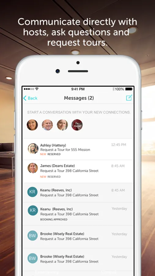 - Communicate directly with hosts, ask questions and request tours.
