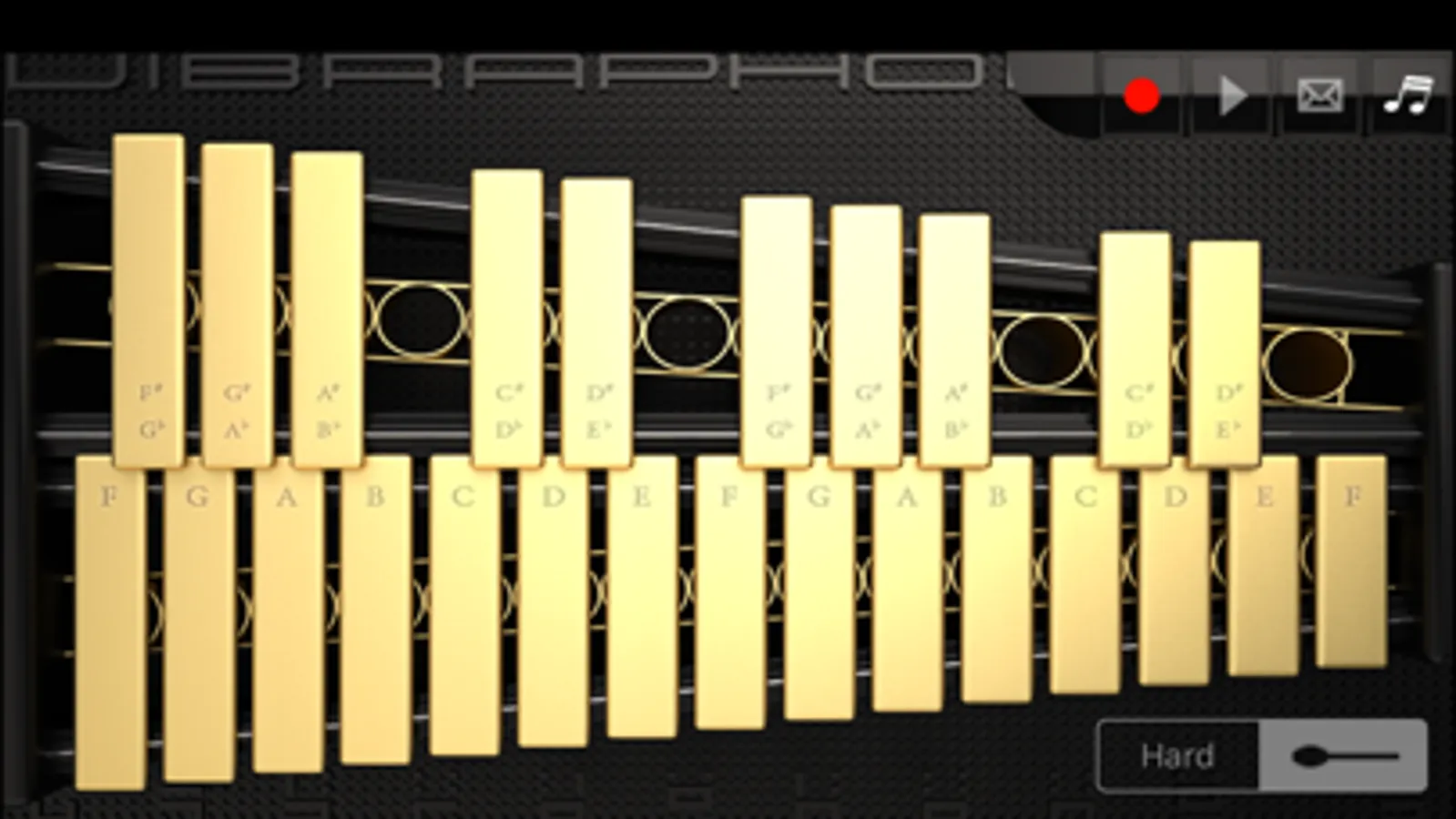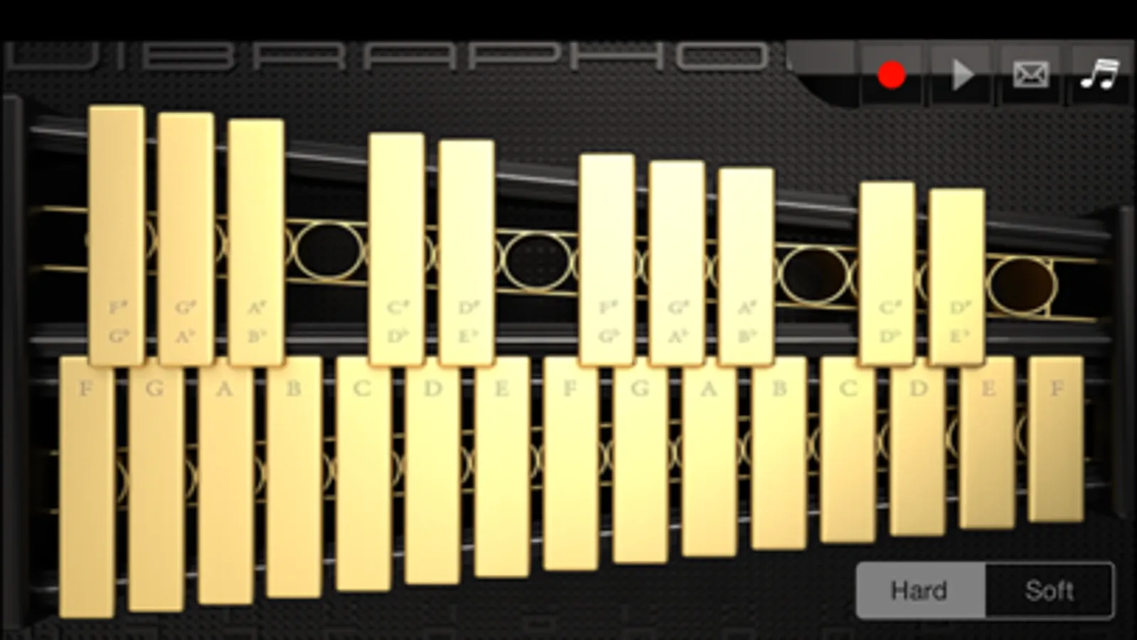 VibraphoneSS is a metallophone application. This application displays 3 octaves on the screen, and you don't need to change octaves to play them. You can also switch between hard tone and soft tone by tapping the button at the bottom right of the screen.