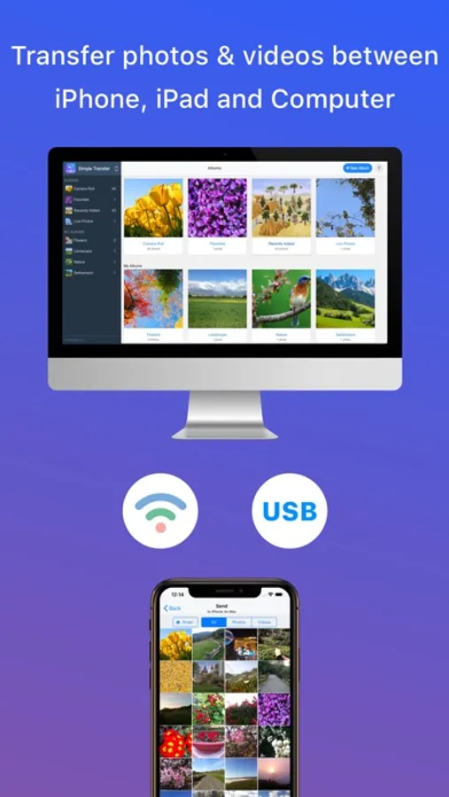 With over 5.5 million downloads, Simple Transfer is the easiest way of transferring your photos and large videos to computer using WiFi or USB. It can also convert HEIC photos to JPG, HEVC videos to MOV/MP4 and Live Photos to videos.