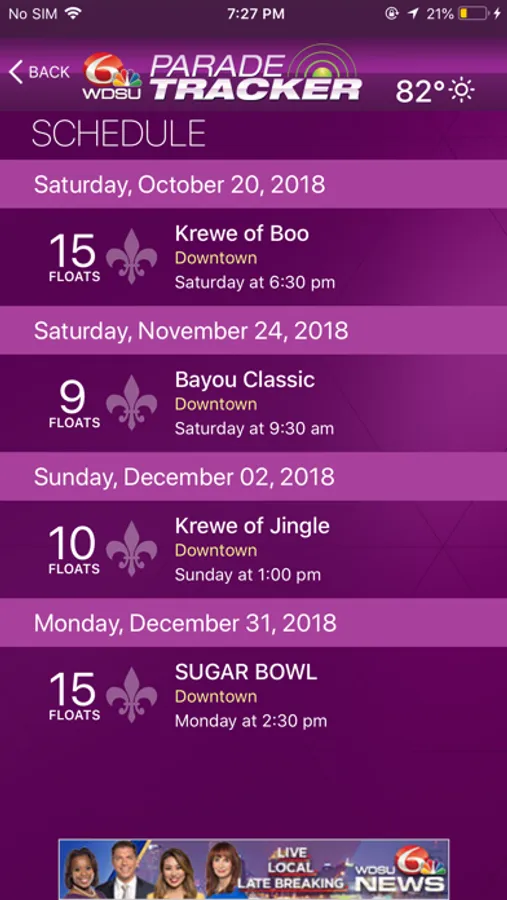 From the start of Carnival season through Mardi Gras, track all of your favorite parades on the original Parade Tracker app from WDSU. Watch in real time as the floats travel along the parade route, plus get a complete list of parade schedules and maps! Then after Mardi Gras is over, keep the fun going year-round with even more parade tracking; including St. Patrick’s Day, Halloween’s Krewe of Boo Parade, the Bayou Classic Parade, the Krewe of Jingle Parade just before Christmas and the Allstate Sugar Bowl New Year’s Eve Parade.