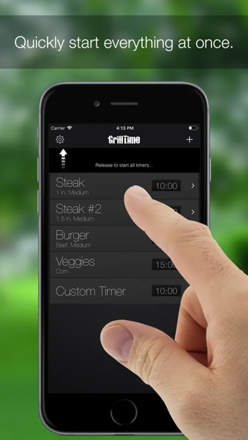 Easily manage multiple items on your grill with simultaneous timers. With a swipe and a tap, you can quickly start, stop, and add extra time.