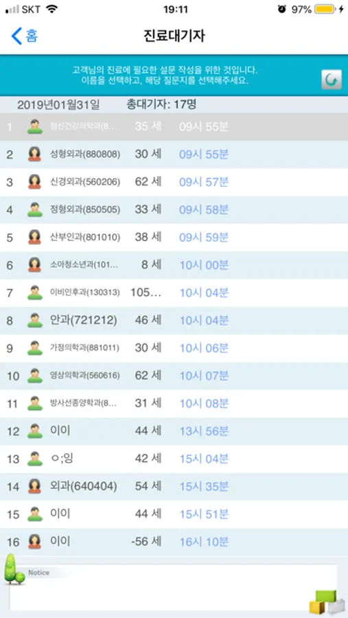 환자가 병원에 내원시에 간단입력을 통해 자동접수 가능하고 해당되는 문진을 선택하여 답하고 발송합니다.