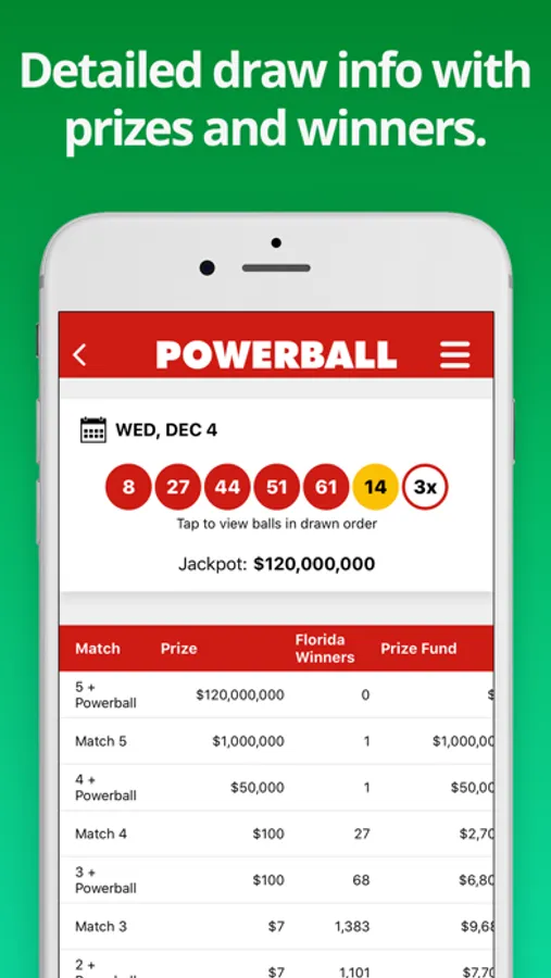 Florida Lotto, Lotto Double Play, Powerball, Powerball Double Play, Mega Millions, Fantasy 5, Cash4Life and Jackpot Triple Play also include a full breakdown displaying the number of winners and amount paid out for each prize level.