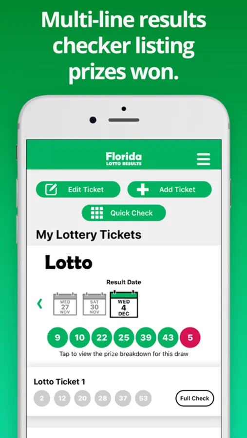 Enter and save your chosen numbers to see if you have won or to see how often they have come up in the past. You can also label your tickets – great if you play multiple lines or if you run a syndicate. The ticket checker also highlights prizes won on each ticket as well as calculating the total for each lottery. Only play lotteries on certain days of the week? Not a problem, you can exclude your checked tickets from draws you do not play.