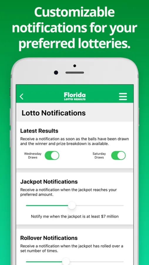 Get notified instantly when the latest lottery results and prize breakdowns become available. The App allows you to customise notifications for specific lottery games and you can also choose which days of the week you play. Want to know when the jackpot has rolled over or has reached a certain amount? Just head to the Notification section of the app to set up your alerts. There is also the option to set notifications at times that suit you - great for reminding you to purchase tickets before the draw.