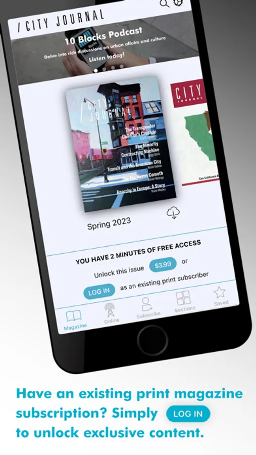 Since urban policy encompasses almost all domestic-policy questions, as well as the largest issues of our culture and society, the magazine views its canvas as very broad indeed. City Journal holds itself to the highest intellectual, journalistic, and literary standards, aiming to produce absorbing reading for intelligent and discerning readers. The app includes all the articles of the print edition, including full-color illustrations, and much more.
