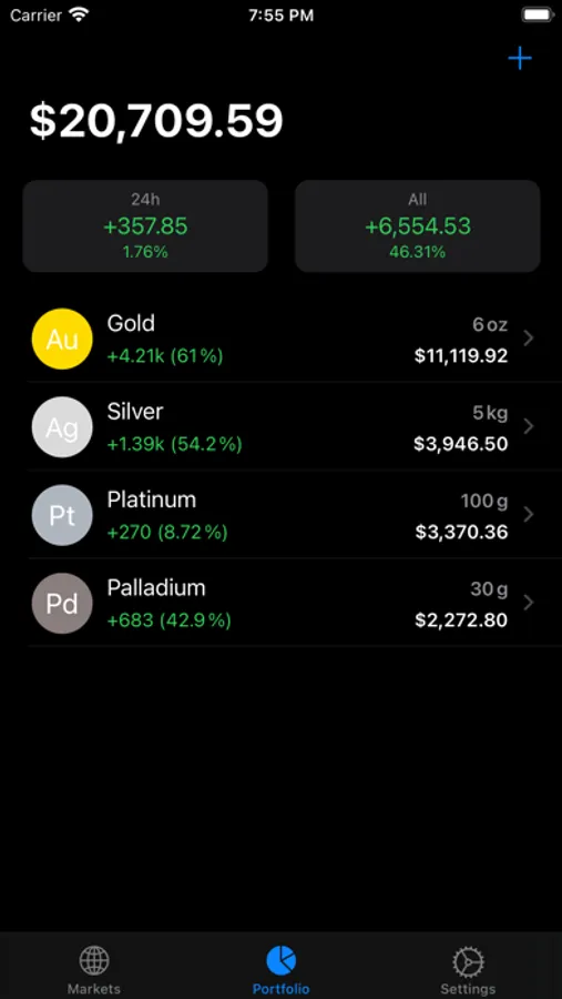 Bullion Pro helps you organize your precious metal portfolio. Track all your precious metal investments and get a detailed performance and market overview.