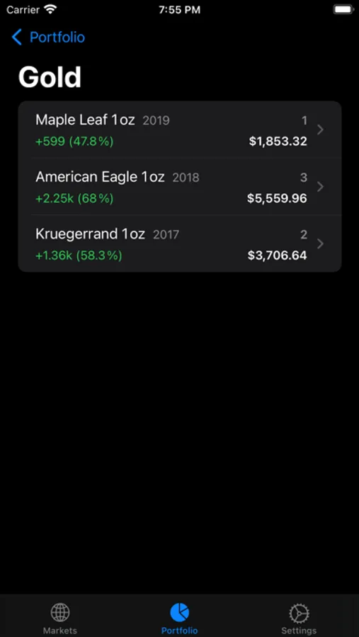 - Organize your coins and bars (Name, Type, Category, Weight, Year, Purity)