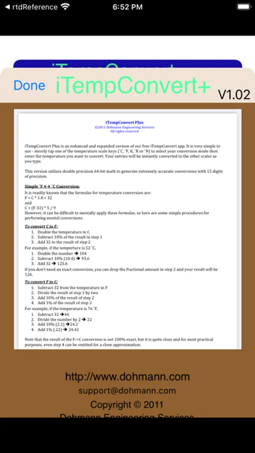 In addition to providing fast, accurate temperature conversions, iTempConvert also includes an Info Page that tells you how to quickly and easily perform mental temperature conversions for those times that your iPhone isn’t handy or when you just want to impress your friends with your mental prowress.