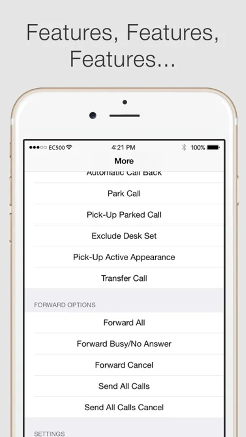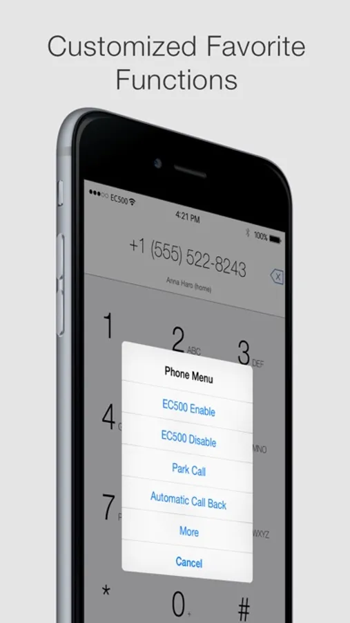 With EC500 your Avaya deskphone is bridged with your iPhone, you can hand off calls between mobile and desk phone. EC500 can be activated or deactivated from your iPhone.