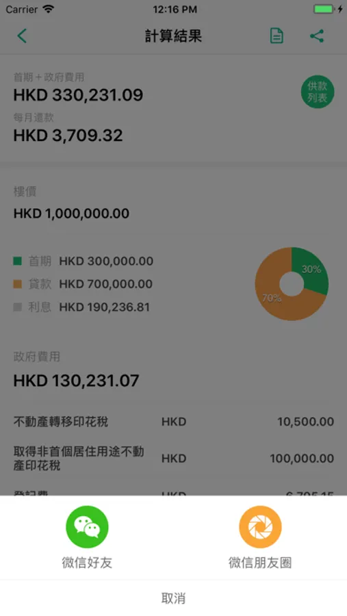 按揭計算器(包括詳細供款表)