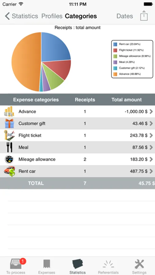 ¤ Manage your referentials : expense categories, payment modes, meal types, customers & projects, vehicles, guests, places, merchants and currencies