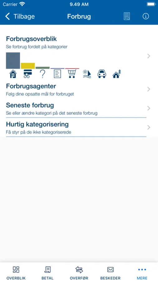 - Få detaljeret indblik i dit forbrug fordelt på kategorier via forbrugsoverblik