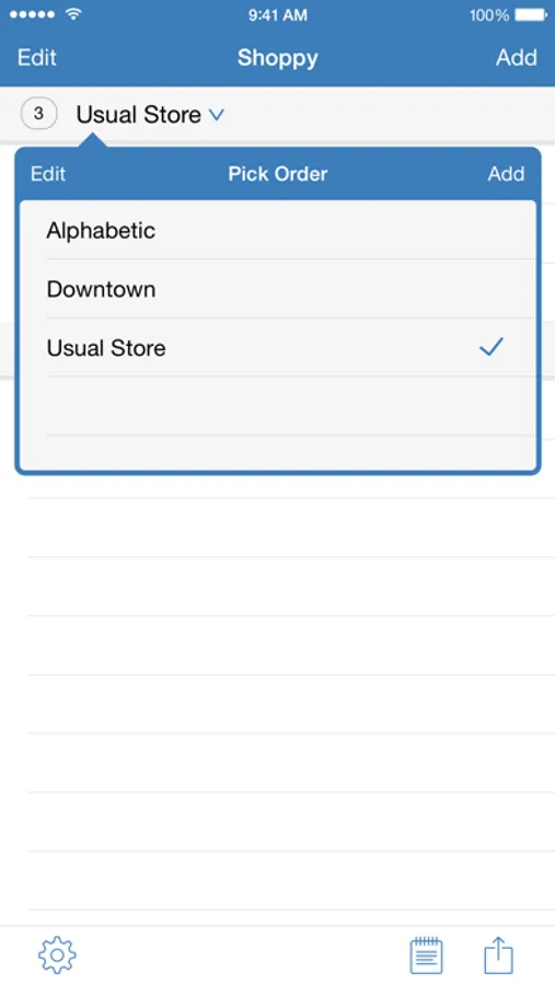 When you go shopping, Shoppy automatically learns the order you pick up items in the store and shows them in the right order the next time you're shopping.