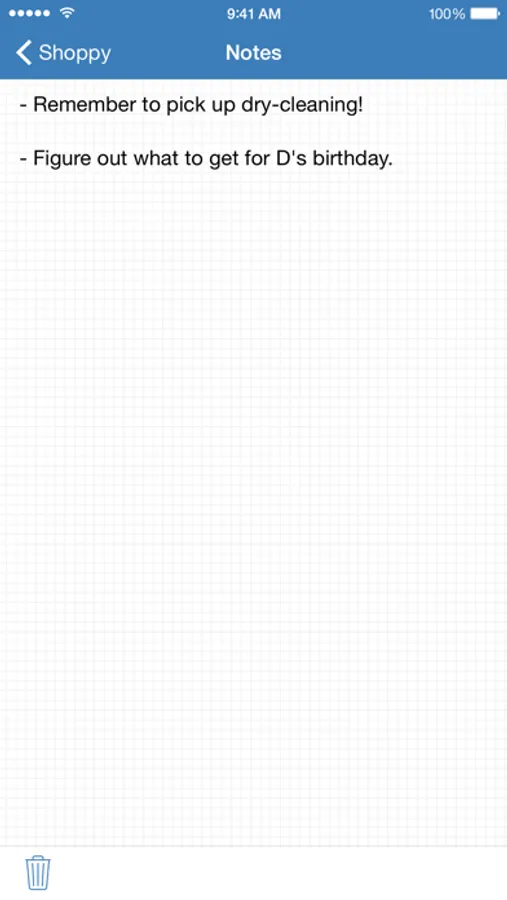 Have you tried grocery shopping apps on your iPhone and felt that they get in your way? Each update with even more features, adding to the clutter. If so, you have come to the right place: Shoppy will help you with your grocery shopping without getting in the way. Think "good old-fashioned paper list" but in the 21st century. We strive to keep the app clean and simple yet beautiful.