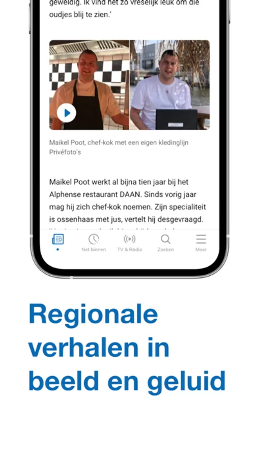 Zodra je de app opent, zie je altijd het belangrijkste nieuws en de nieuwste video’s van dat moment. Bovenin in het scherm kies je zelfde regio waar je voorkeur naar uitgaat. Op de pagina ‘Net binnen’ zie je het laatste nieuws in een oogopslag.