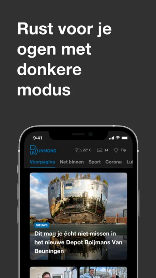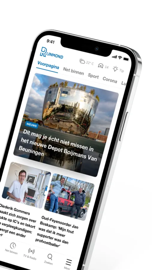 De laatste sportberichten, opsporingsberichten, alles over Radio Rijnmond of het laatste nieuws over de woningmarkt. De belangrijkste onderwerpen hebben in de app een aparte plek gekregen.
