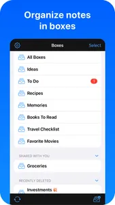 • Write thousands of notes. Use boxes to group them with colored dividers.