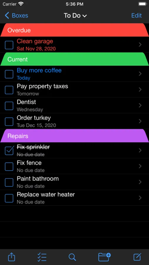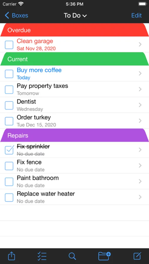 • Assign due dates to cards and optionally sort them by date, title, or checked.