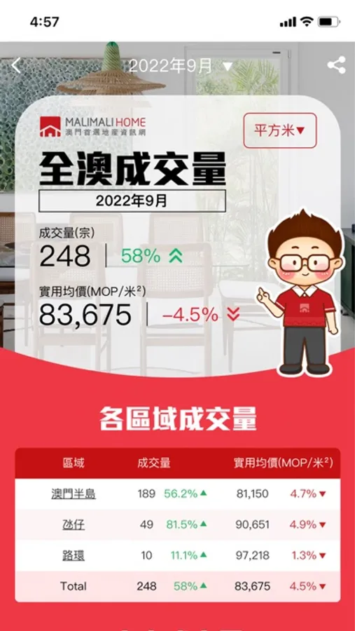 4.Query monthly transaction data, visually displayed in the form of charts, and compare them by region or month. In addition, you can view the trend chart of transaction amount and volume to help you understand the latest market trends;