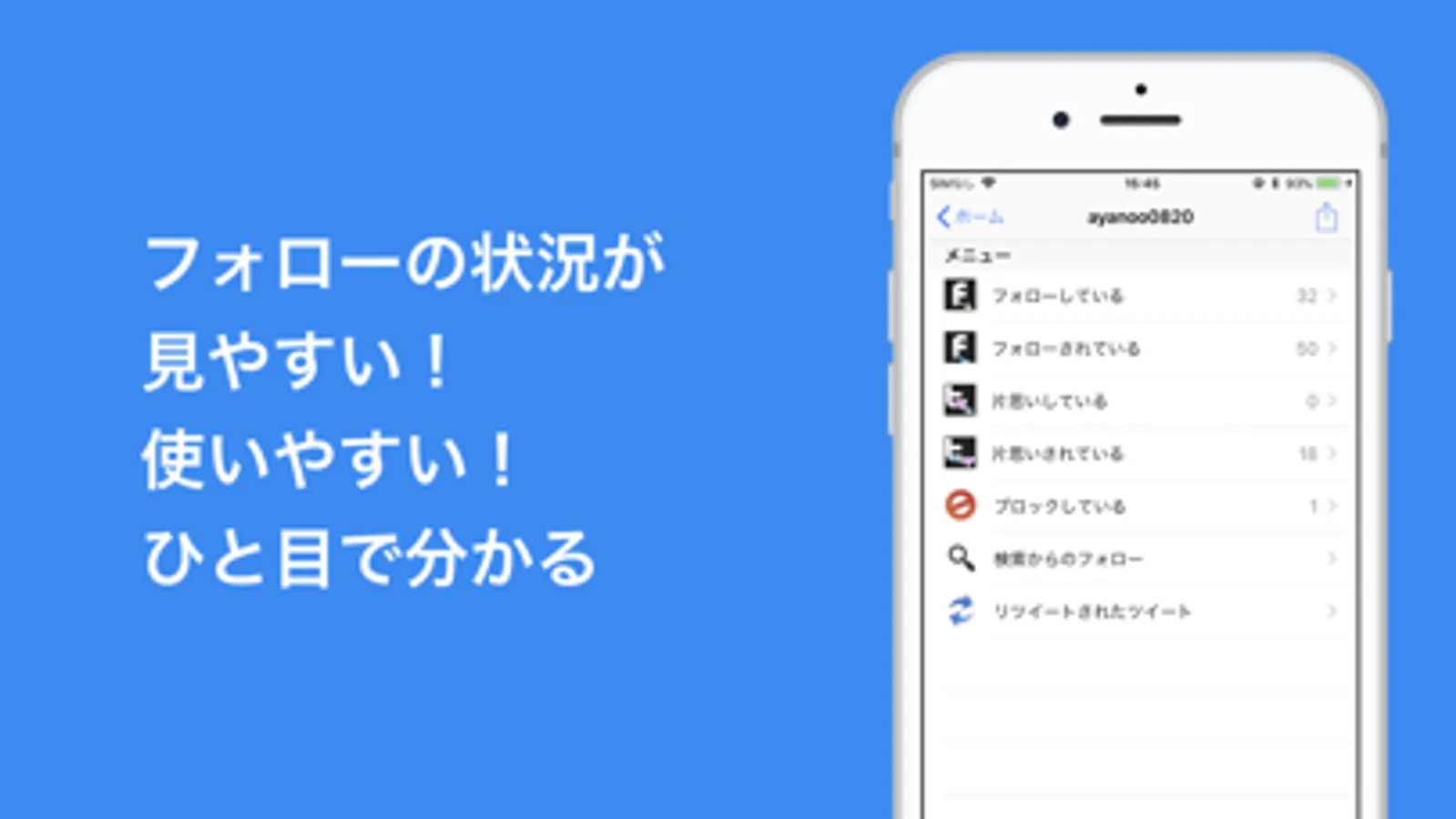 このアプリは「Twitterのフォロー&フォロワーを管理する事に特化したアプリ」です。
