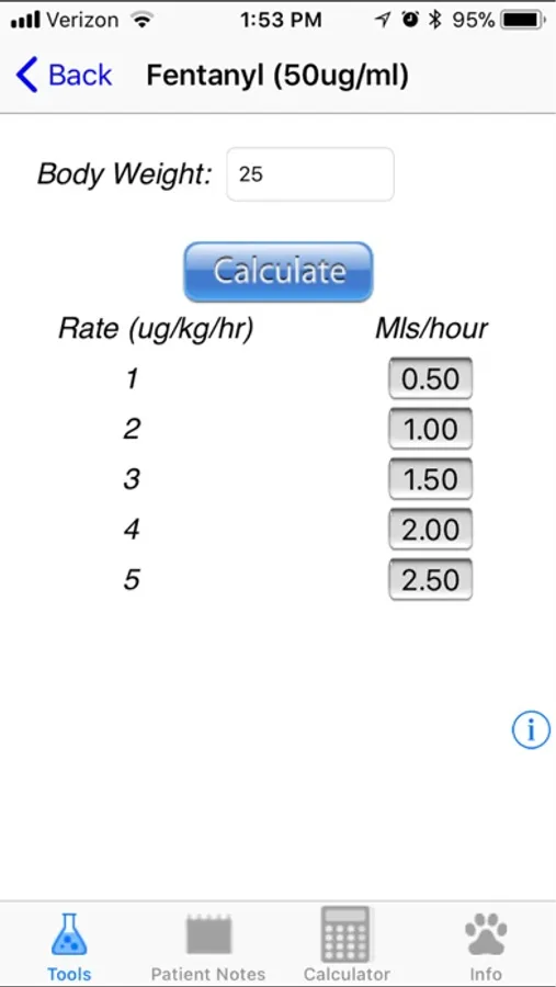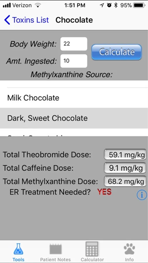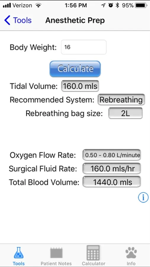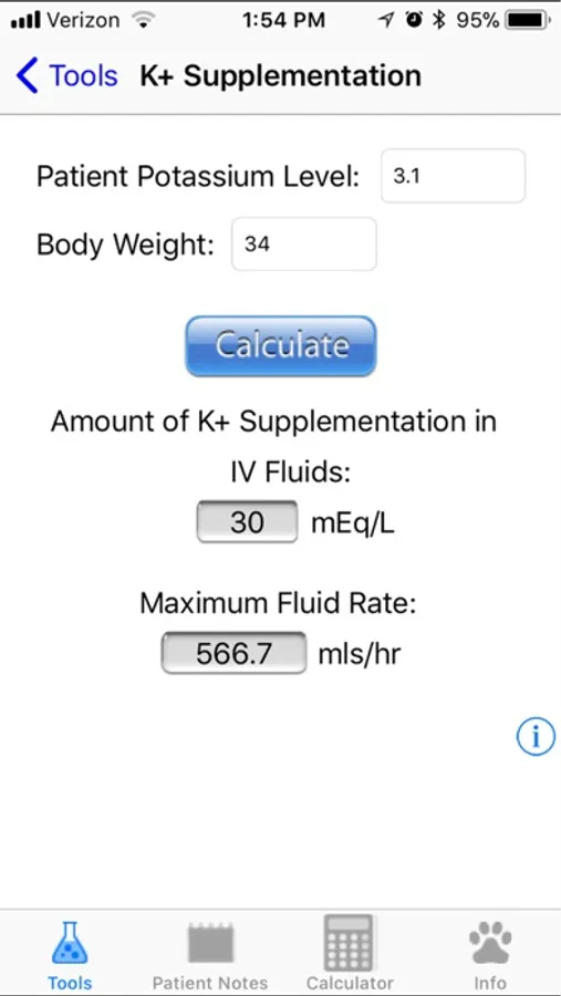 This application is intended for clinical use by veterinarians, veterinary students, and veterinary technicians. The included calculations are to be used as a resource with the understanding that the user’s medical knowledge and clinical judgment may supersede the output information. Like any tool, it is never a substitute for clinical judgment. Every effort has been made to ensure the accuracy of DVM Calc’s content, but all results must be confirmed before use. By purchasing this application the user releases the designers/developers/sellers from liability.