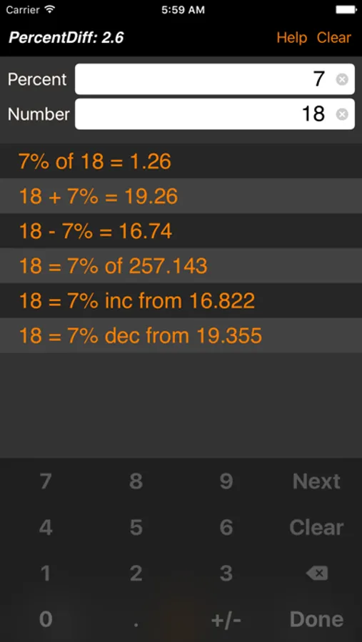 PercentDiff is the original multi-result percent calculator application.