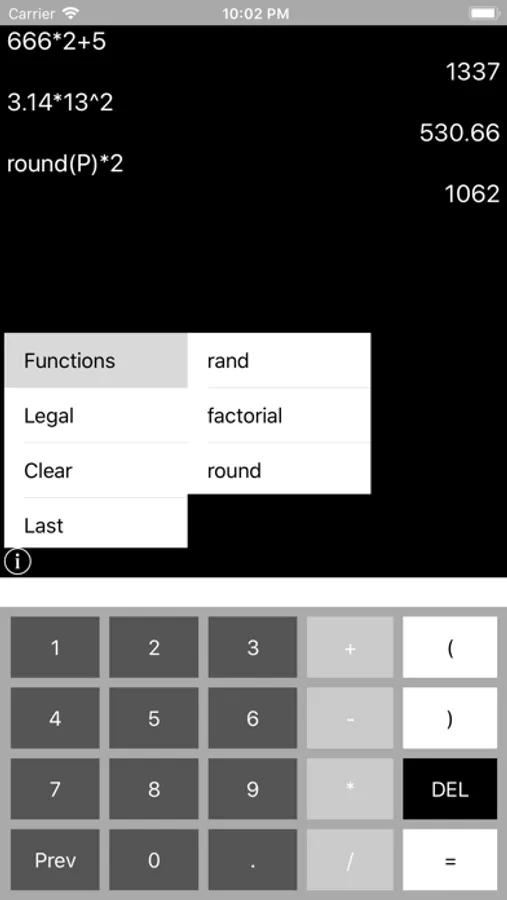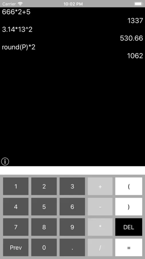 Evaluate complex mathematical statements. Evaluate lets you type out expressions just like you can on a fancy graphing calculator. Compute complicated or advanced formula easily with Evaluate.