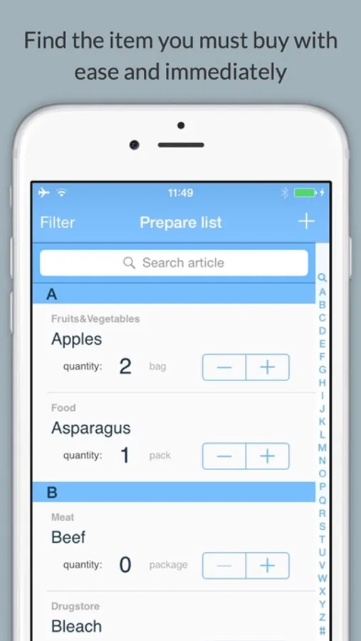 With it you can set the items, categories and packaging choice. You take note of all those products have to buy. At any time you quickly record those purchases that you should do, because you always carry your iPhone with you.
