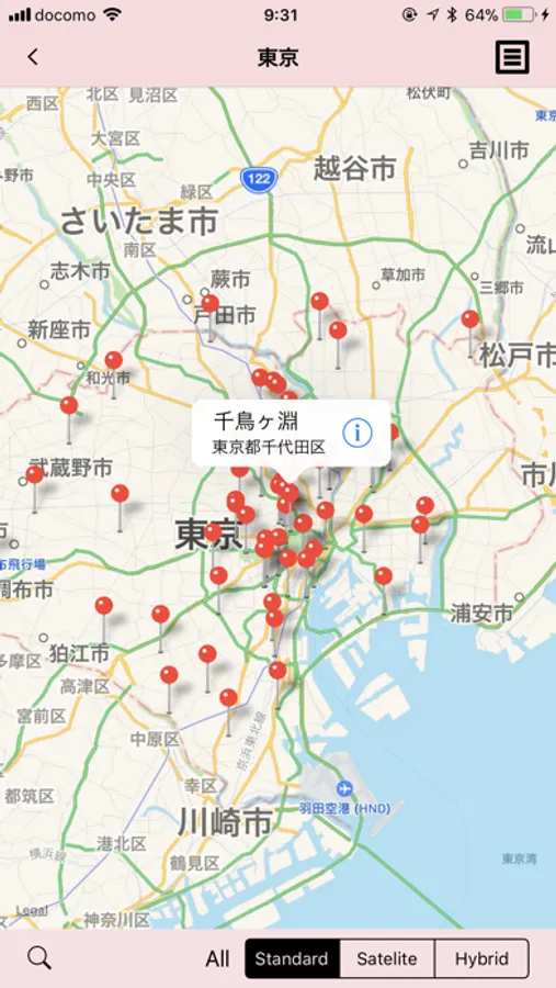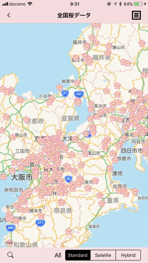 全国約1600のお花見スポットをマッピングしています。