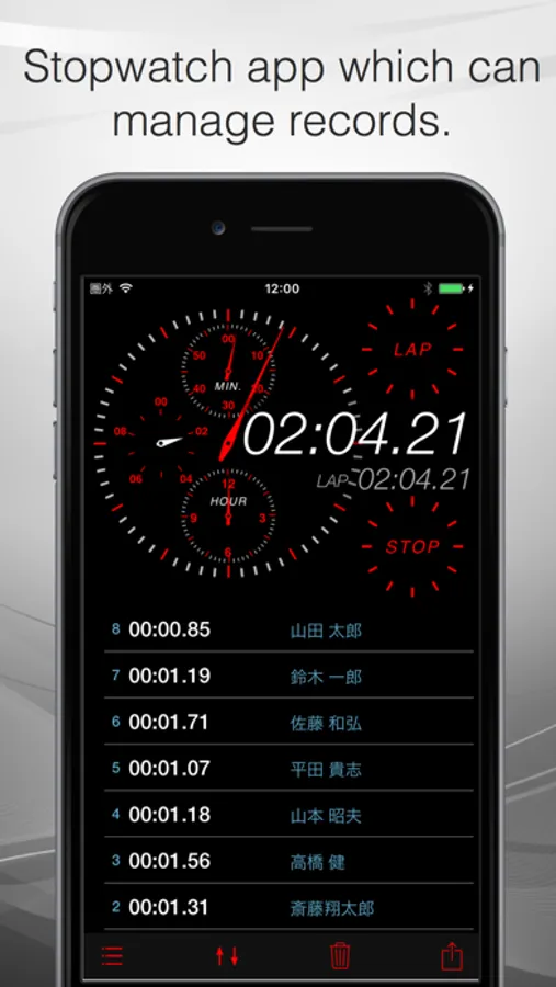 "Rec StopWatch" is a stopwatch application can also manage measured records.