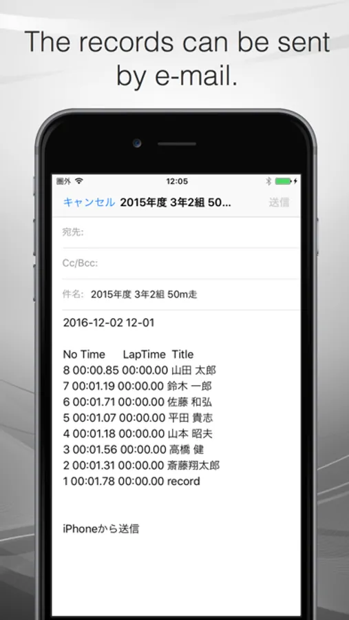 Labels can be set to the measured time, for example, this application respond to measuring and recording student's 50m running.