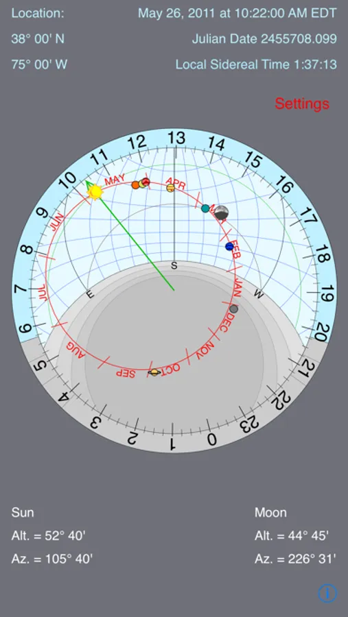 Astrolabe Clock is an astronomical clock inspired by the astrolabe, an ancient astronomical instrument used to tell time and to predict the location of the Sun, stars and planets. This modern interpretation gives a view of the sky showing at a glance the time of day, day of year, and the location in the sky of the Sun, Moon, planets and stars. Astrolabe Clock also gives the time of sunrise and sunset, the phase of the Moon, transit times for the Sun, Moon, planets and stars, and can be used to show the occurrence of solar and lunar eclipses.