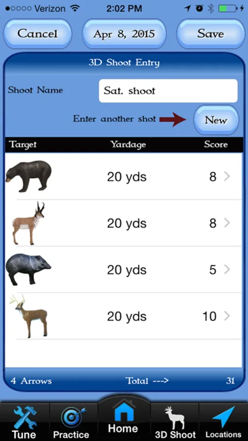 ArcheryPal now provides interfaces for tracking your 3D shoots. Keep score as you go and select from many popular 3D targets and ArcheryPal will tell you the 10 ring size and give feedback on range based on your bow configurations.