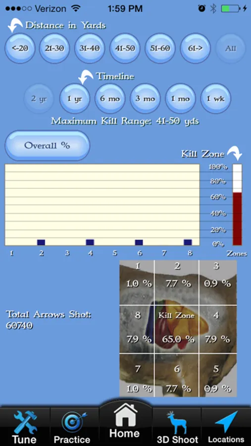 ArcheryPal provides easy to read graphs to allow you to track your progress and determine trends in arrow placement over time.