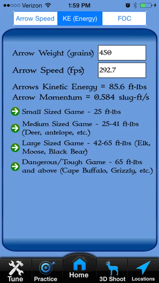 ArcheryPal calculates your Arrow Speed, Kinetic Energy and helps you determine whether your arrows are properly balanced for optimum flight.