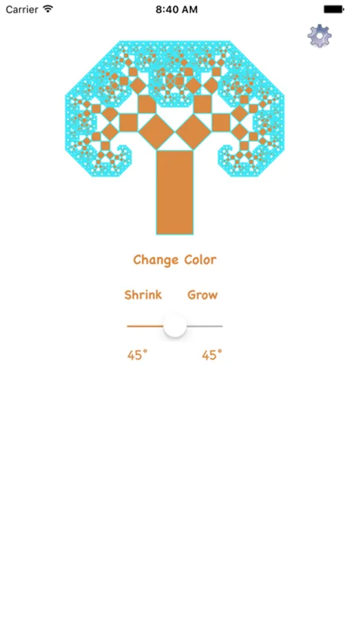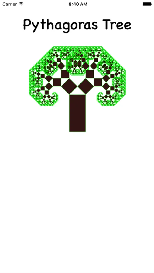 The Pythagoras Tree is math art. A square trunk is drawn. The hypotenuse of a right triangle is laid on top of the square. From the two legs two new squares are drawn. This process is repeated recursively until there the size of the square is too small to draw. Here you can adjust the angles of the triangle and the color of the tree. You can also make the tree grow and shrink to see the steps in making the tree.