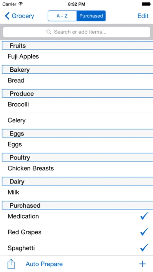 - Assign aisles to items to help guide you through the store in your preferred order (grocery tip: sort the frozen/refrigerated food aisle at the bottom to keep your ice cream from melting or meats from going bad).