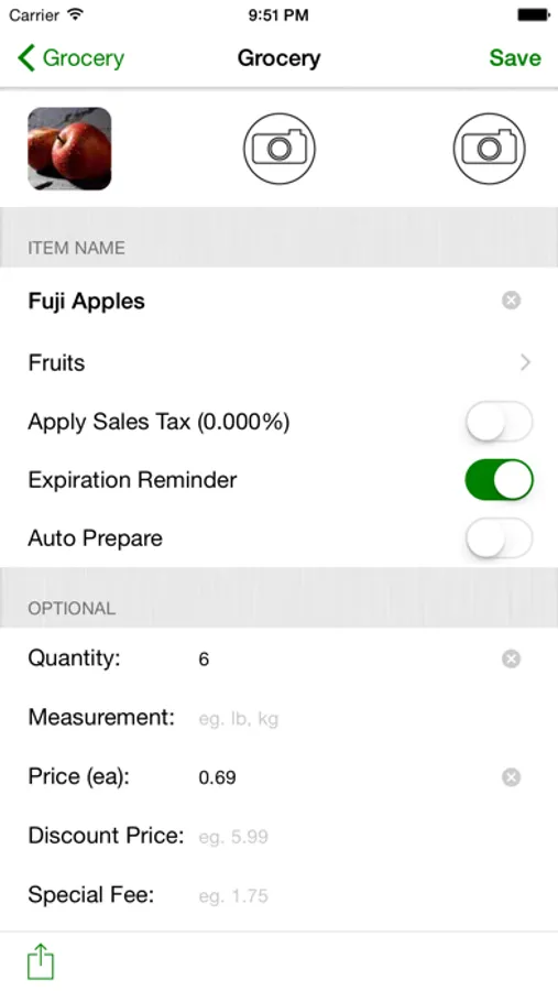- Manage your item expiration dates and set reminders to notify you when an item is about to expire.