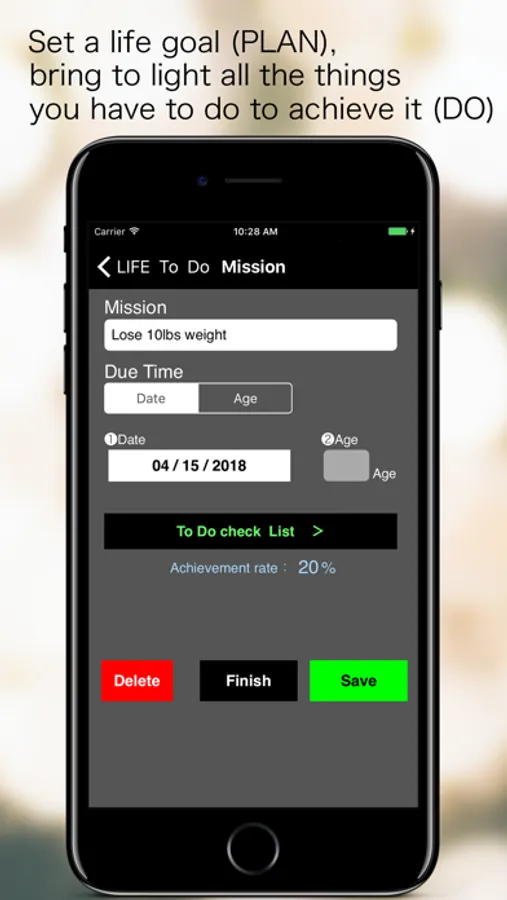 ( Build a house , Start a job ,Save Money , Diet , Get married , Go on journey , etc)