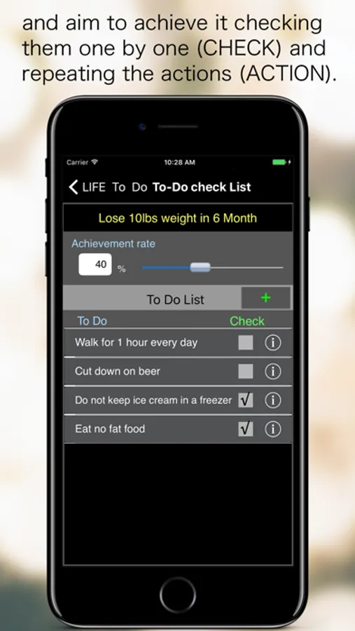 Set a life goal (PLAN), bring to light all the things you have to do to achieve it (DO), and aim to achieve it checking them one by one (CHECK) and repeating the actions (ACTION).