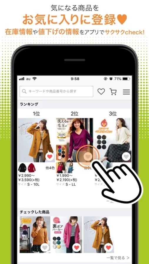 気になるアイテムはすぐにお気に入り登録!お気に入り一覧も簡単に閲覧可能!