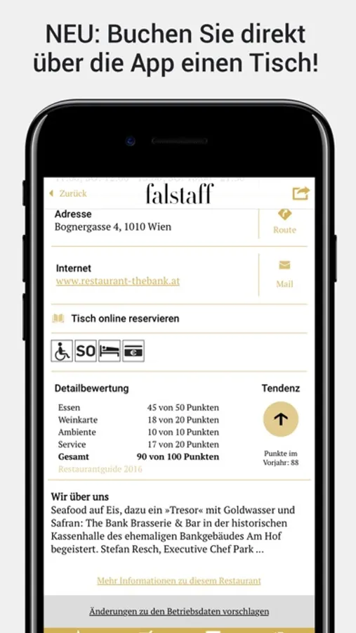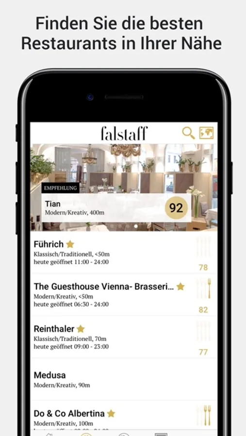 Der Falstaff Restaurant-Guide ist ein echter Publikumsführer, der aus den Bewertungen von 20.000 Gourmetclub Mitgliedern entsteht. Die Mitglieder können Ihre Votings auch bequem über diese App abgeben.