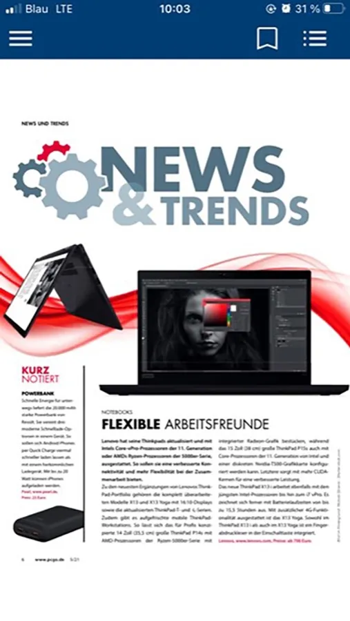 Die Navigation ist kinderleicht und intuitiv: Mit einer Seitenübersicht bewegen Sie sich schnell durch das ganze Magazin, interessante Seiten können Sie als Lesezeichen speichern, im Inhaltsverzeichnis finden die komplette Liste aller Artikel. Natürlich lassen sich alle Seiten mit zwei Fingern zoomen und im Hoch- wie im Querformat lesen.