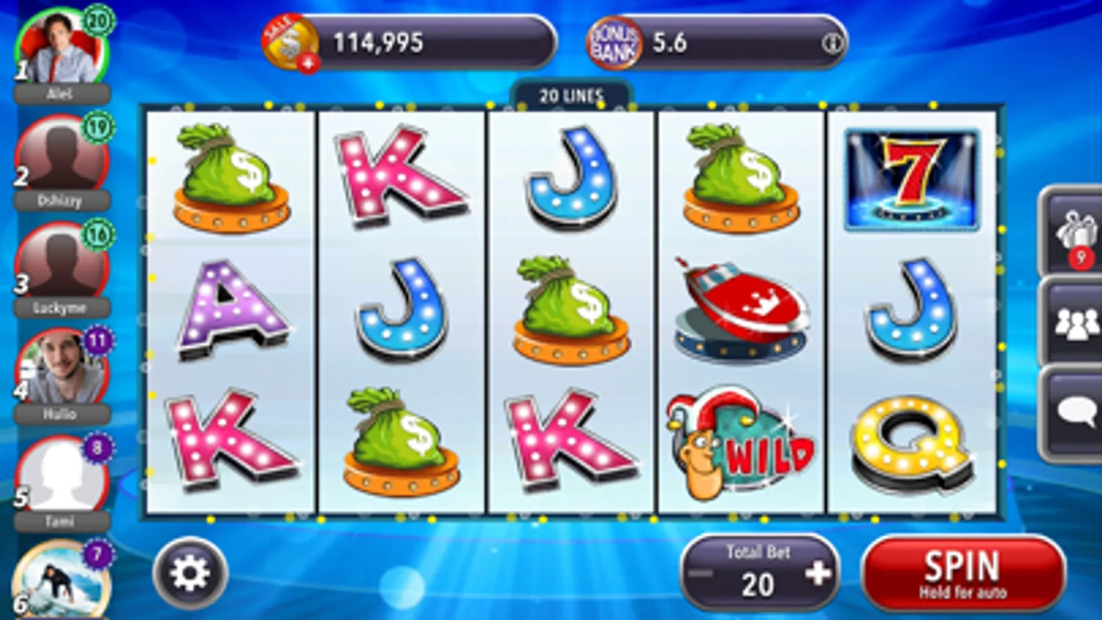 · Compete on a 5-reel 20-line casino slot machines
