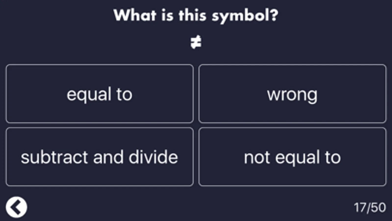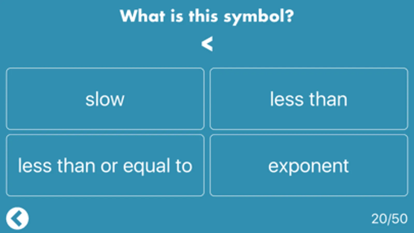 Math symbols are everywhere in the world around us. This free app helps you memorize and master your understanding of the different symbols so you're ready to face them in life or in testing.