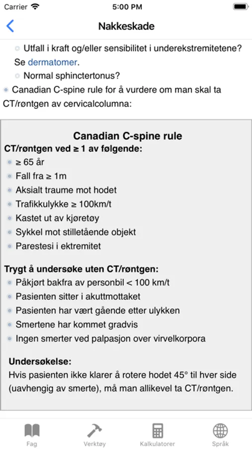 I tillegg finner man rikelig med ressurser og verktøy som medisinke kalkulatorer, algoritmer, referanseverdier, gipsteknikk, antibiotika, journaleksempler og ICD10 koder for alle tilstandene som omtales.