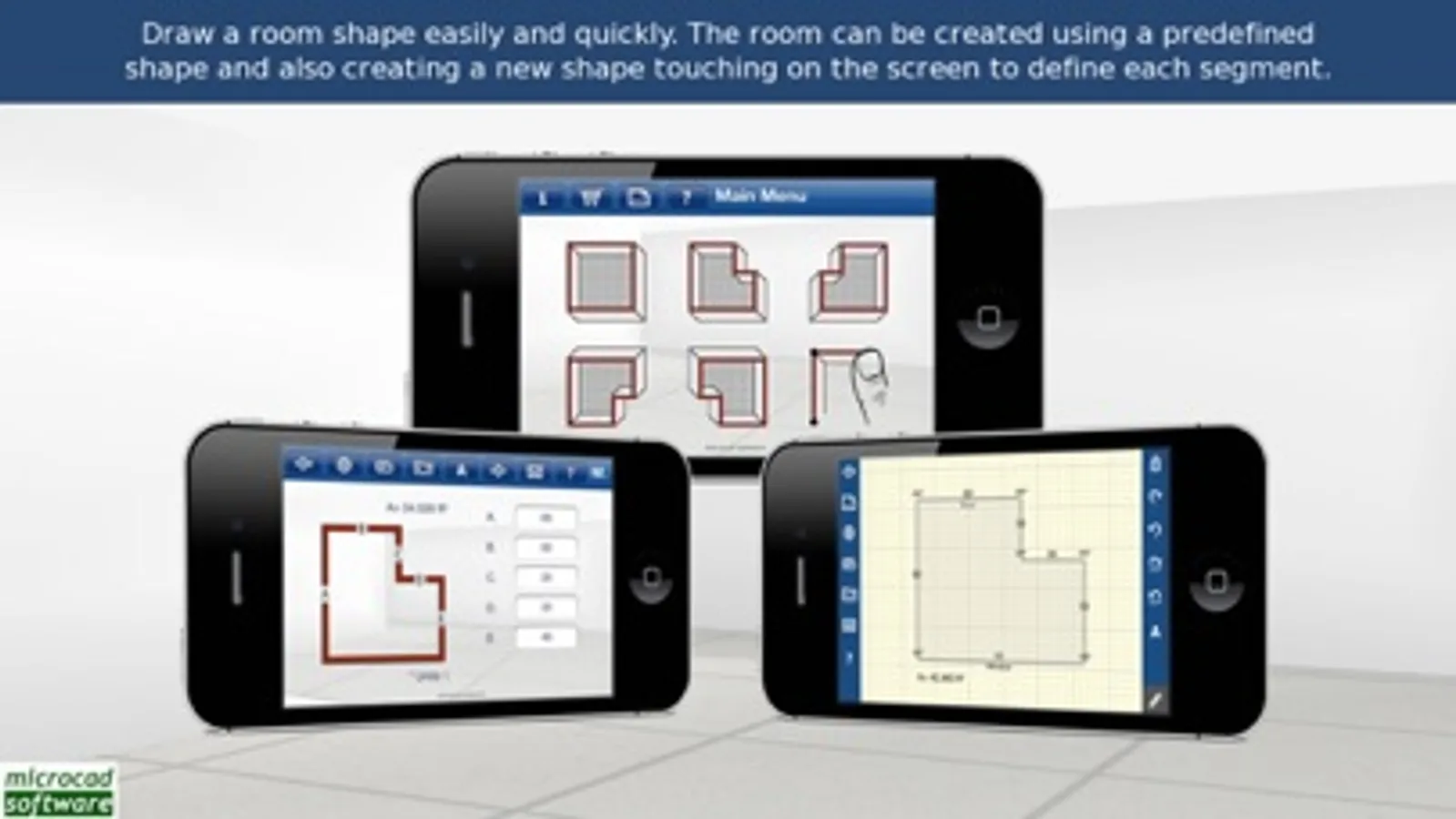 Draw a room shape in 2D easily and comfortably with your iPod/iPhone or iPad and send it by email in ". dxf" and ".xml" format. "pdf". "png" and ". jpg" are supported too (** Full information below).