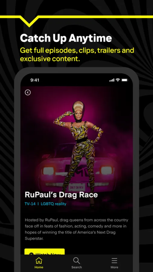 Watch full episodes of your favorite shows with the MTV app. Enjoy The Challenge, RuPaul's Drag Race, Jersey Shore Family Vacation and many more, available right in the palm of your hand. You'll also get exclusive content, including cast reactions, bonus clips and deleted scenes. Plus, you can now watch Pluto TV via the MTV app!