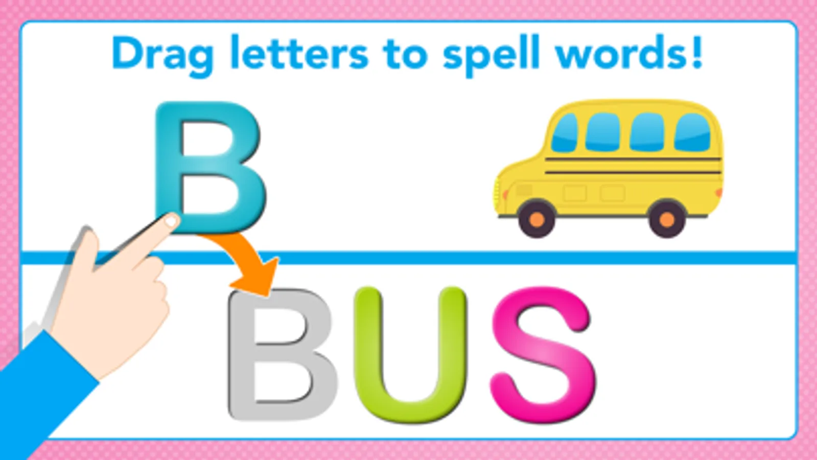 * In the word puzzle mode, children match letters with their shapes to spell a word.